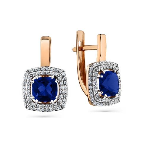 Элегантные серьги, украшенные сапфировыми корундами в окружении сверкающих фианитов, выполнены с сочетанием красного и белого золота 585 пробы. Блеск и красоту драгоценных металлов подчёркивает насыщенный цвет камней.