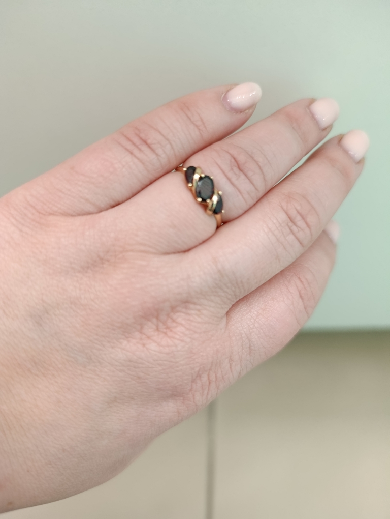 Изысканное и элегантное кольцо с гранатами, которое привлекает внимание своей глубокой цветовой гаммой и роскошью