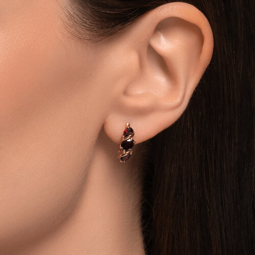 Серьги, красное золото, гранат, проба 585
