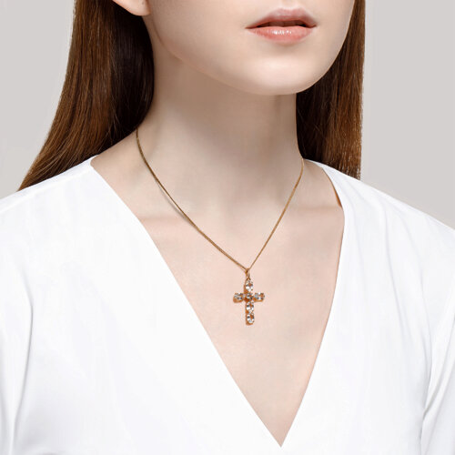 Изысканное и духовное украшение, которое сочетает в себе благородство красного золота и чистоту горного хрусталя