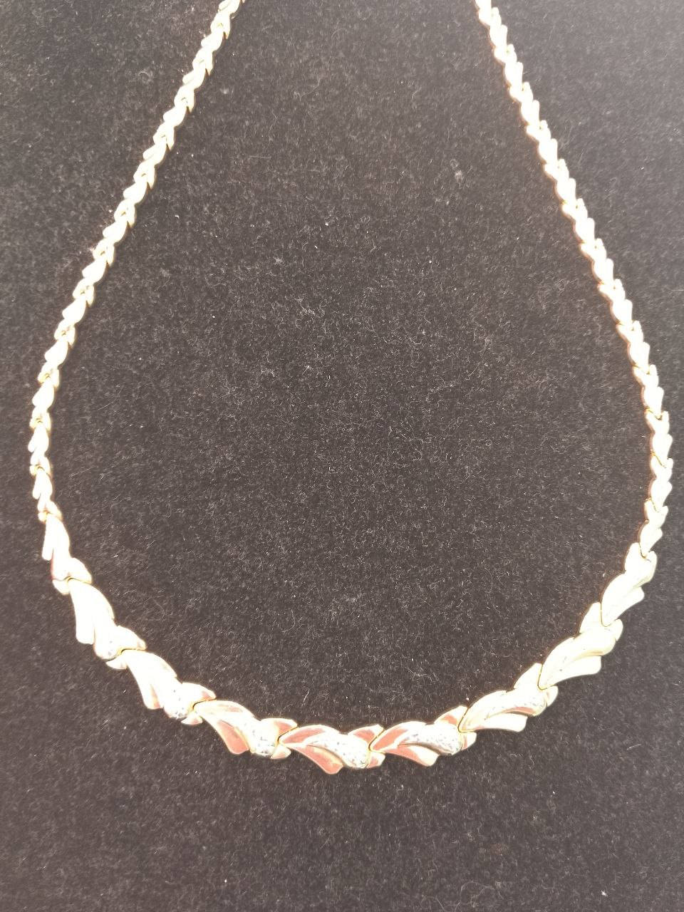 Роскошное колье выполнено с сочетанием красного и белого золота 585 пробы, украшено алмазной гравировкой