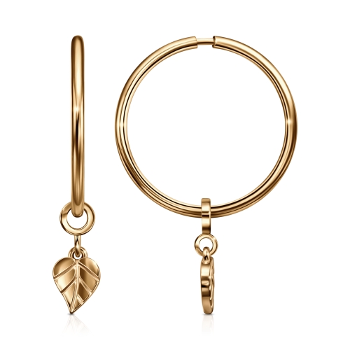 Изящные серьги-конго, выполненные из благородного красного золота 585 пробы, привлекают внимание своим утонченным дизайном в виде стилизованных листочков