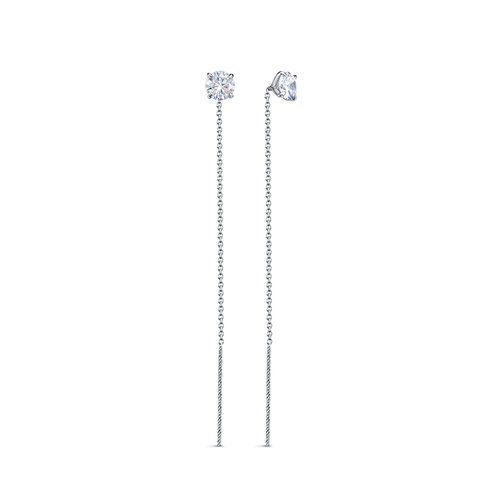 Восхитительные серьги продевки с утончёнными цепочками, украшенные фианитом, раскроют всю нежность и воздушность вашего образа