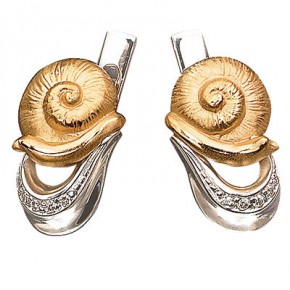 Серьги, с изображением улиток, выполнены из серебра 925 пробы и украшены сверкающими фианитами Сваровски
