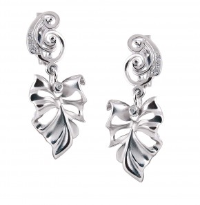 Нежные серьги, с подвесом в виде листа тропической лианы , выполнены из серебра 925 пробы, украшены сверкающими фианитами Сваровски.
