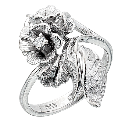 Нежное кольцо из серебра 925 пробы от бренда Альдзена, с Фианитом swarovski , из коллекции Горная Лаванда.