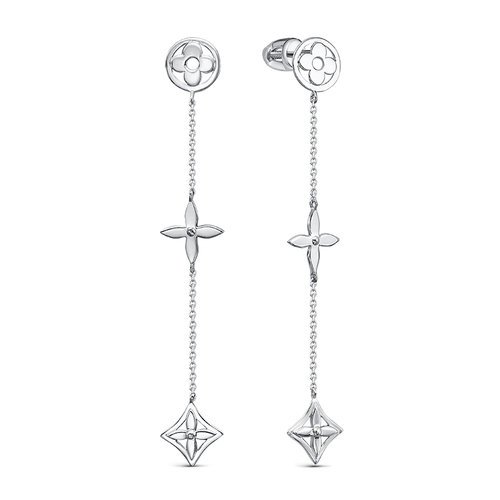 Элегантные серьги-пусеты с подвесной частью , выполнены из родированного серебра 925 пробы.Изделие покрыто родием- метелл платиновой группы, придает блеск. Тип замка - пусет, самый надежный и комфортный. От бренда Delta, коллекция LV Lock. В комплект поставки входит: