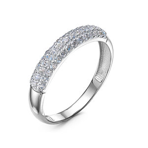 Изящное кольцо, украшенное дорожками сверкающих фианитов, выполнено из серебра 925 пробы