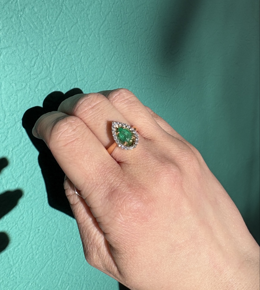 Приобрела кольцо с таким шикарным изумрудом. На солнце переливается вместе с бриллиантами божественно!