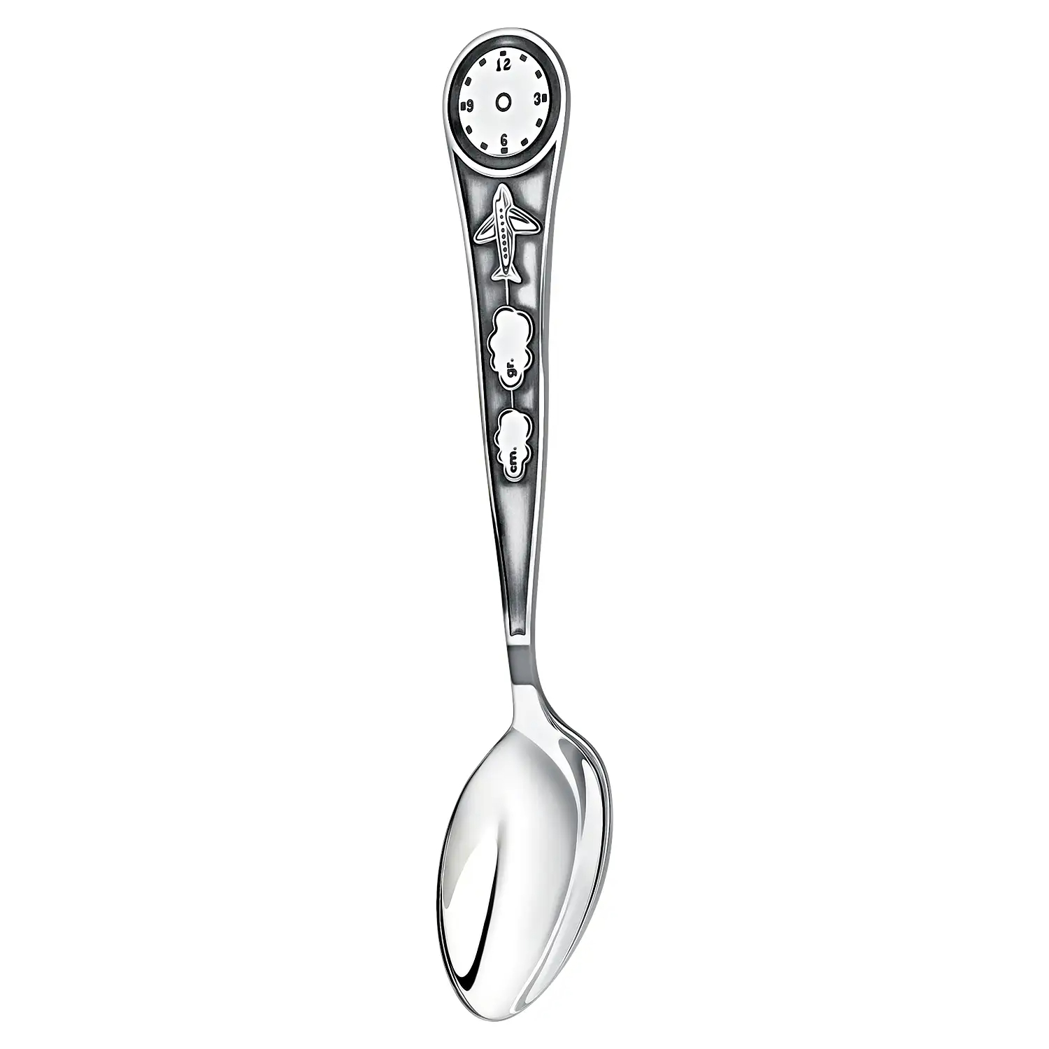 Детская ложка "Часы" под гравировку изготовлена из серебра 925 пробы без примесей посторонних металлов и без применения гальванического покрытия
