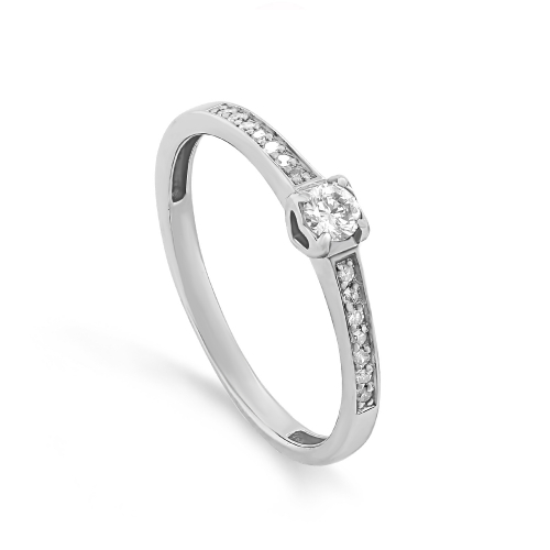 Элегантное кольцо, украшенное дорожкой сверкающих бриллиантов, выполнено из белого золота 585 пробы