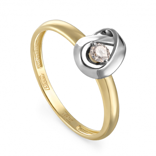 Уникальное и стильное ювелирное изделие, сочетающее в себе контрастные элементы. Комбинация теплого желтого золота и холодного белого золота создает интересный визуальный эффект, который подчеркивает глубину и теплоту бриллианта шампанского цвета. Сам бриллиант, с его уникальным коричневато-желтым оттенком, напоминает тон выдержанного шампанского, добавляя кольцу винтажного шарма и элегантности. Такое кольцо станет замечательным подарком для тех, кто ценит оригинальность и изысканность, и отлично подойдет как для повседневного ношения, так и для особых случаев. Представлено брендом "KABAROVSKY". Вставки: 1 Бриллиант шампань Круг-57 7-10 6/6А 0.119ct