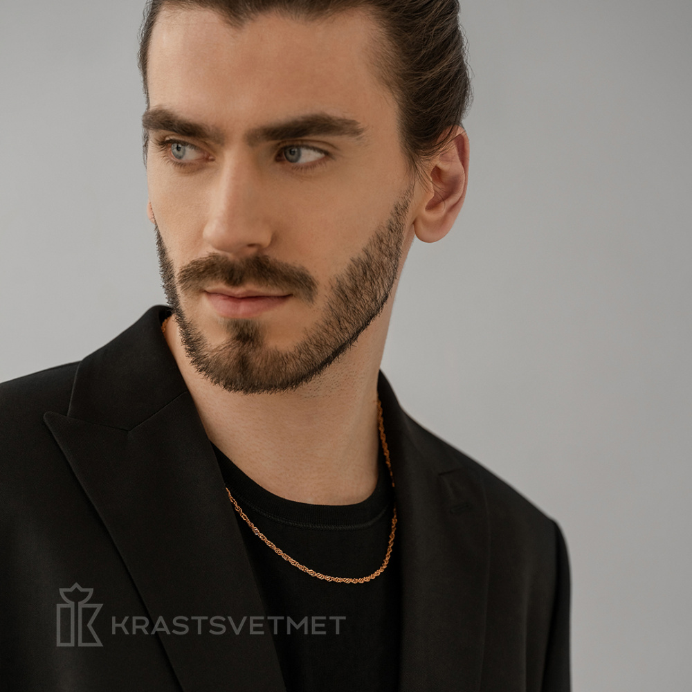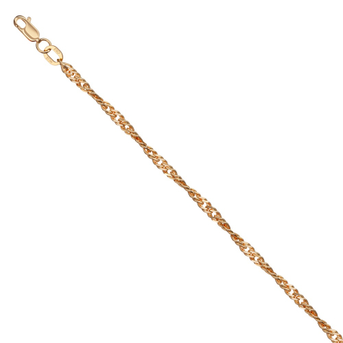 Цепь из красного золота 585 пробы с элегантным плетением «Сингапур» и сияющей отделкой алмазной гранью. Знаменитое кручёное плетение «Сингапур» приятно удивляет не только своей красотой, но и высокими эксплуатационными качествами. Игривые волны цепочки играют солнечными лучами, создавая яркие переливы и привлекая внимание окружающих. Помимо эстетической ценности, такая цепь отличается повышенной прочностью и долговечностью, что позволяет пользоваться ею долгие годы, не опасаясь износа. Этот аксессуар идеально подойдёт как для повседневного ношения, так и для торжественных мероприятий, добавляя изюминку и элегантность вашему образу. Диаметр проволки 0,50мм. Представлено брендом КРАСЦВЕТМЕТ.