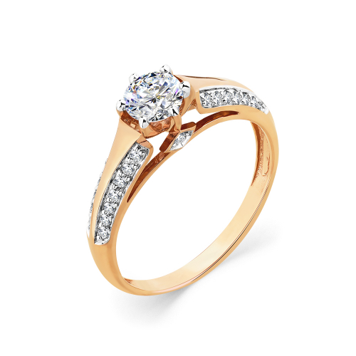 Кольцо, красное золото, фианит, проба 585