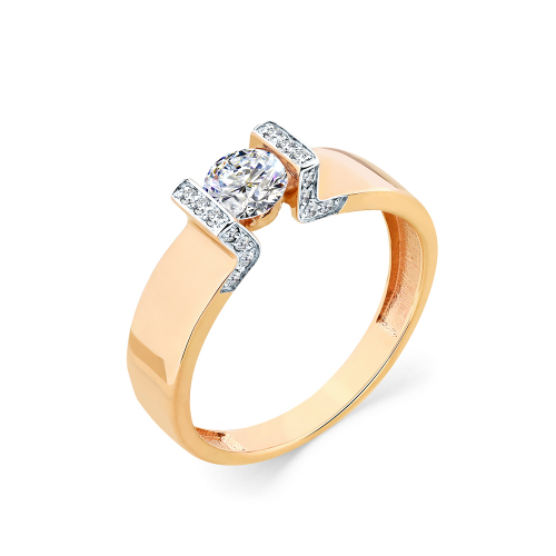 Кольцо, комбинированное золото, фианит, проба 585