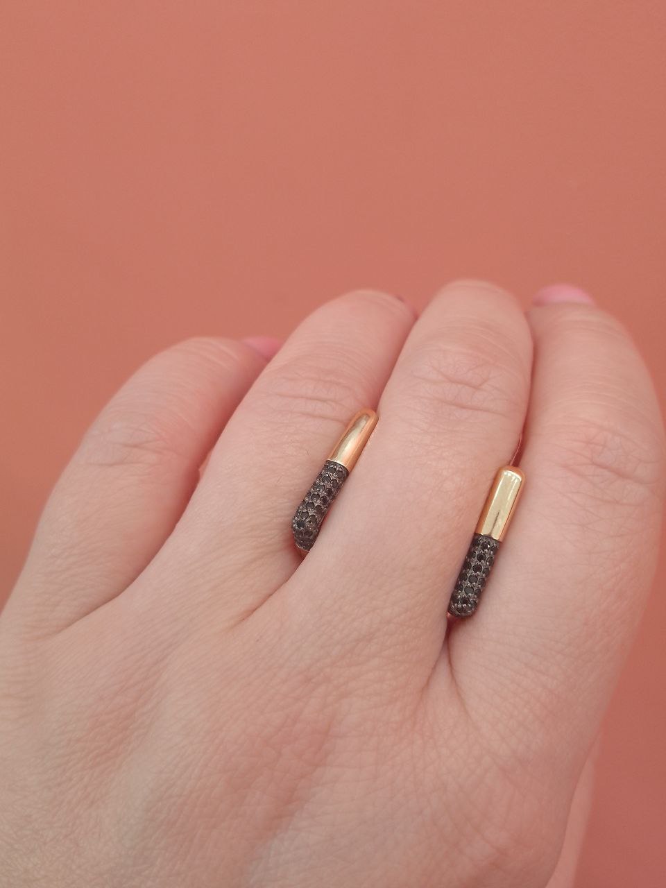Элегантные серьги из красного золота 585 пробы, украшены дорожками черных фианитов