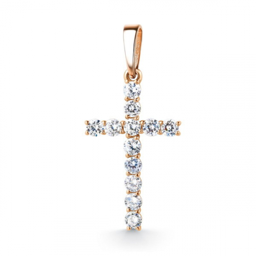 Подвеска в виде декоративного крестика, инкрустированного фианитами,из красного золота 585 пробы