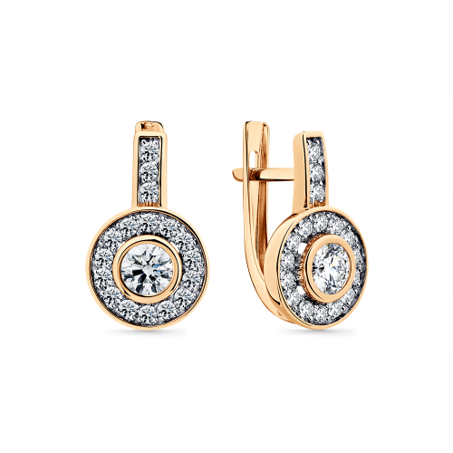 Роскошные серьги выполнены в сочетании красного и белого золота 585 пробы. Изделие украшено искрящимися фианитами в закрепке из белого золота, что визуально увеличивает их объем и подчеркивает блеск и красоту. Тип замка - английский, самый надежный и удобный. Изделие представлено брендом "CARLIN". В комплект поставки входит: