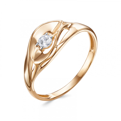 Кольцо с сверкающим фианитом выполнено из красного золота 585 пробы