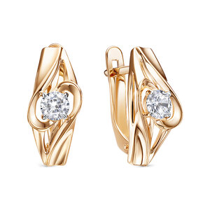 Серьги, комбинированное золото, фианит, проба 585