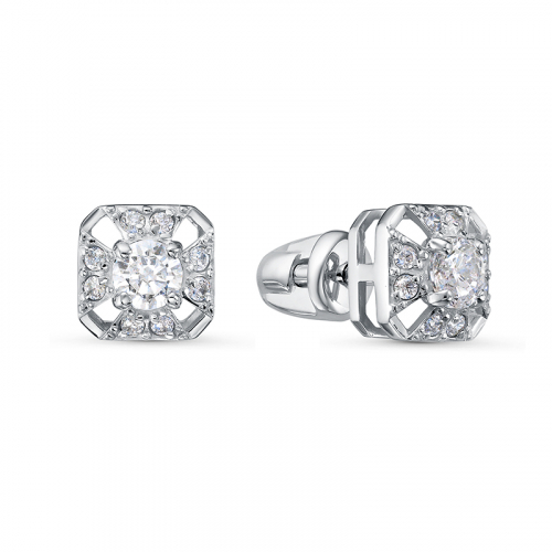 Элегантные серьги-пусеты в классическом стиле выполнены из белого золота 585 пробы, украшенные сияющими фианитами