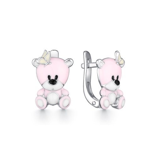 Милые серьги в виде мишек выполнены из серебра 925 пробы и украшены россыпью фианитов, от бренда "DEWI". Тип замка - английский, самый надежный и удобный. Украшение из коллекции KIDS, которая наполнена яркими красками, вызывающими радость и восхищение у юных модниц. В комплект поставки входит: