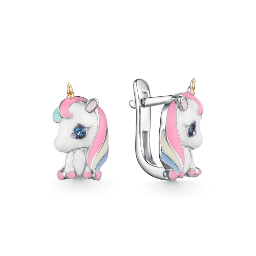 Серьги в форме единорога выполнены из серебра 925 пробы