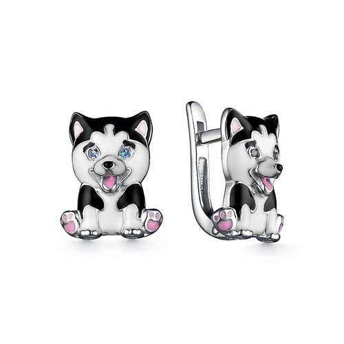 Серьги оригинального дизайна в виде собаки выполнены из серебра 925 пробы и украшены ювелирной эмалью, от бренда "DEWI"