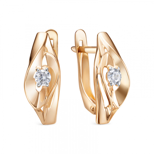 Серьги, красное золото, фианит, проба 585