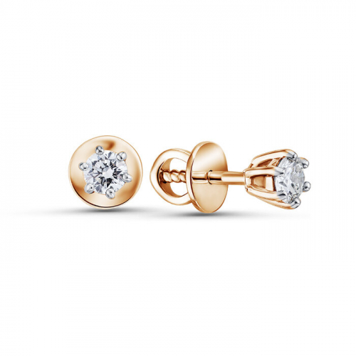Серьги-пусеты с сверкающими бриллиантами, выполнены из красного и белого золота 585 пробы