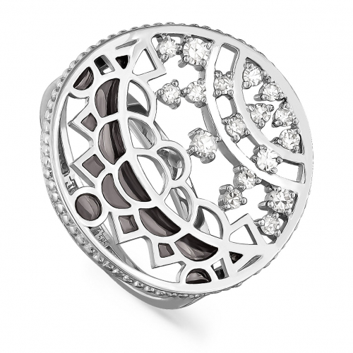 Ажурное кольцо, выполнено из белого золота 585 пробы, украшено холодной эмалью чёрного цвета и сияющей россыпью бриллиантов