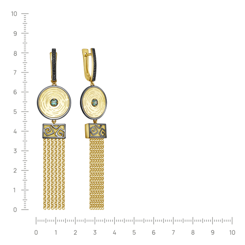 Великолепные серьги из серебра 925 пробы, с применением технологии золочения и родирования, украшены натуральными изумрудами и дорожками из черных фианитов