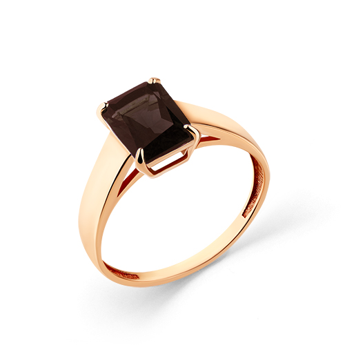 Кольцо из красного золота 585 пробы с крупным раух-топазом поражает глаз глубиной дымчатого кристалла, плавно переходящего в тёплое солнечное сияние благородного металла
