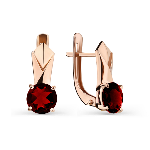 Серьги выполнены из красного золота 585 пробы, украшены великолепными красными гранатами круглой формы. Огранка камней максимально раскрывает их насыщенный цвет, делая более заметным и привлекательными. Дизайн украшения универсально подходит к какому угодно образу и способен изящно завершить любой наряд. Тип замка - английский, самый надежный и удобный. Изделие представлено брендом "MAGIC STONES".