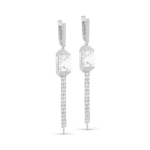 Роскошные серьги с подвесной частью украшенной бриллианитами выполнены из серебра 925 пробы от российского бренда Kabarovsky