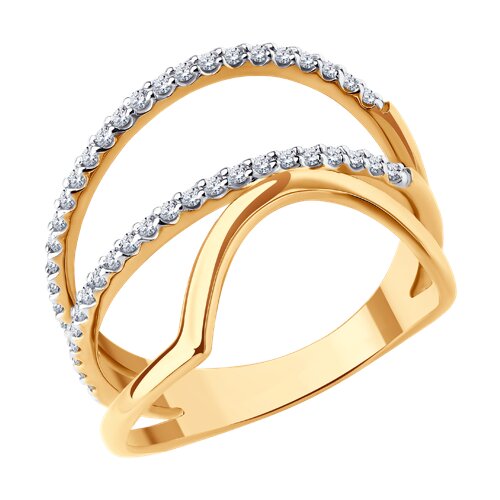 Элегантное кольцо выполнено в сочетании красного и белого золота 585 пробы со сверкающими фианитами