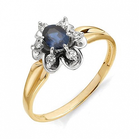 Роскошное кольцо из красного и белого золота 585 пробы с натуральным сапфиром и бриллиантами, от бренда Алькор.Закрепка камней выполнена в белом золоте, что визуально увеличивает их объём, а так же подчёркивает блеск и красоту.