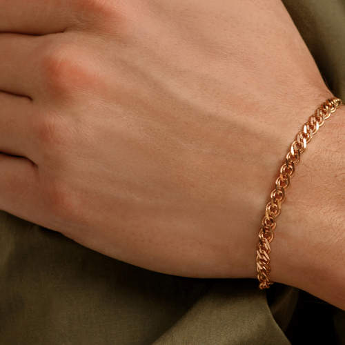 Изящный облегченный браслет изготовлен из красного золота 585 пробы с оригинальным плетением "Нонна" и отделкой алмазной гранью