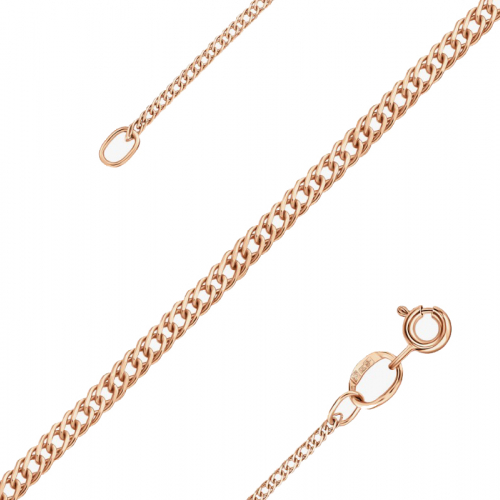 Полновесная цепь из насыщенного красного золота 585 пробы притягивает взгляд изысканным плетением «двойной ромб», которое подчеркивает блеск благодаря оригинальной алмазной грани