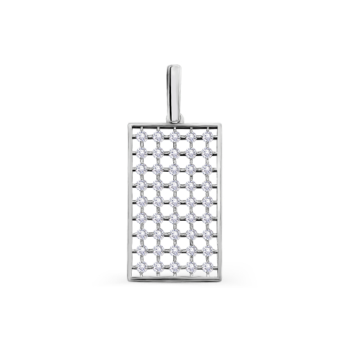 Стильная ажурная подвеска прямоугольной формы, украшенная россыпью сверкающих бриллиантов, выполнена из белого золота 585 пробы