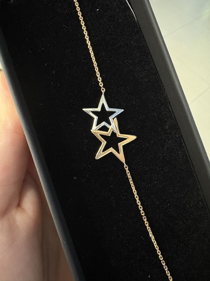 Купила браслет к дню рождения своей дочки. Очень понравился, из комбинированного золота. Уин и проба есть. Думаю доченьке понравится.