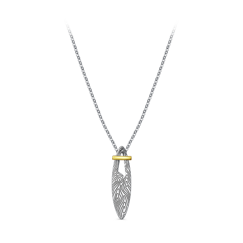 Стильное цепочное колье из серебра 925 пробы с подвеской, выполнено в технике керамика клеар