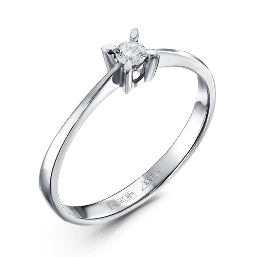 Кольцо с сверкающим бриллиантом выполнено из белого золота 585 пробы