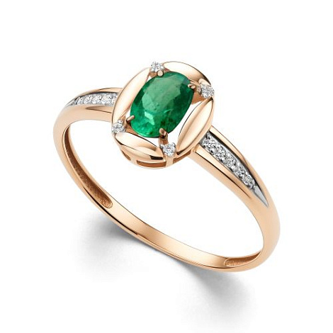 Кольцо, комбинированное золото, изумруд, проба 585