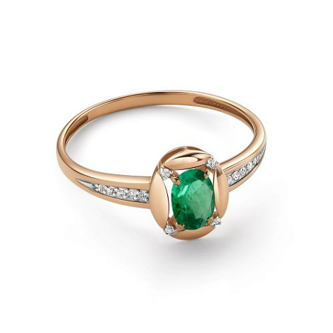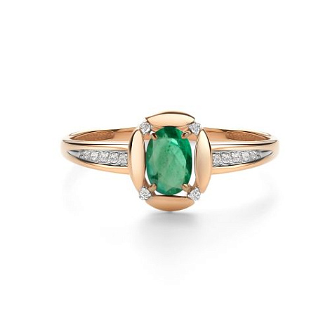 Роскошное кольцо из красного и белого золота 585 пробы с крупным изумрудом и россыпью бриллиантов