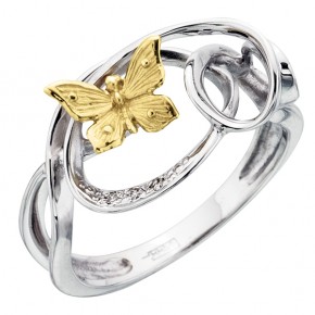 Нежное кольцо, выполнено в сочетании жёлтого и белого золота 585 пробы, украшено сияющими бриллиантами