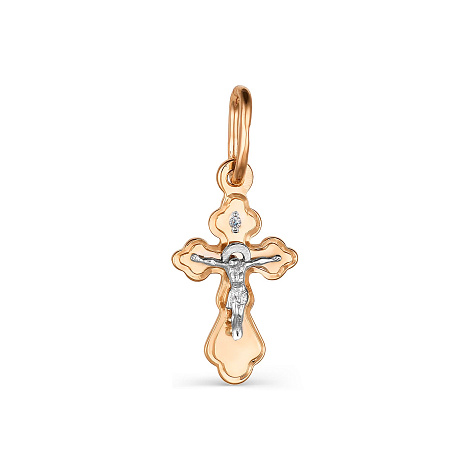 Подвеска - крест выполнена в сочетании красного и белого золота 585 пробы, украшена великолепным сияющим бриллиантом