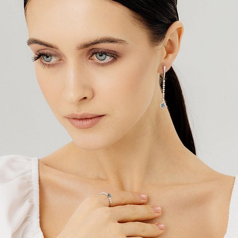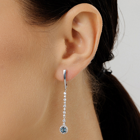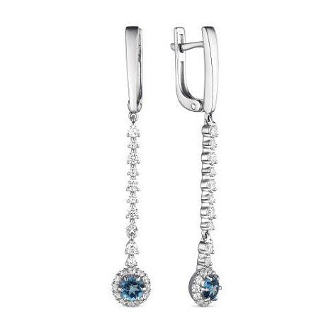 Роскошные длинные серьги из серебра 925 пробы. Вставка: 2 Топаз Лондон Синий Круг 0,596