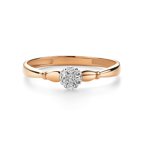 Элегантное кольцо с сверкающими бриллиантами в изящном касте круглой формы, выполнено сочетанием красного и белого золота 585 пробы