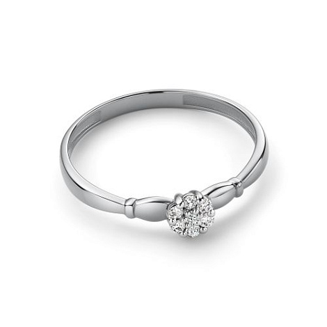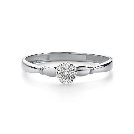 Кольцо с бриллиантами на изящном касте в цветка, выполнено из белого золота 585 пробы
